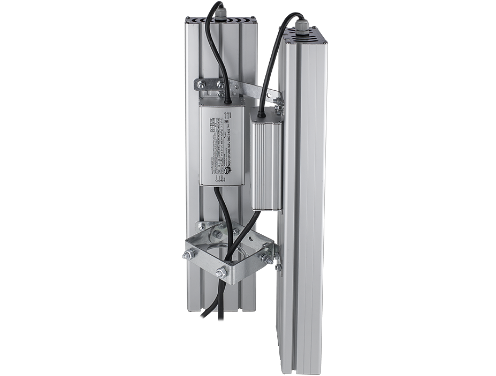 Плата для светодиодов из аллюминия. Корпус светильника - профиль из анодированного алюминия, с торцов пластиковые крышки. Рассееватель - силикатное стекло толщиной. LED-драйвер расположен на корпусе светильника. Оборудован Консольным или Универсальным креплением, в зависимости от модели.