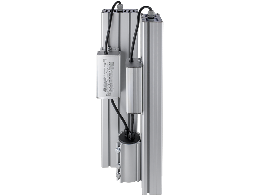 Плата для светодиодов из аллюминия. Корпус светильника - профиль из анодированного алюминия, с торцов пластиковые крышки. Рассееватель - силикатное стекло толщиной. LED-драйвер расположен на корпусе светильника. Оборудован Консольным или Универсальным креплением, в зависимости от модели.