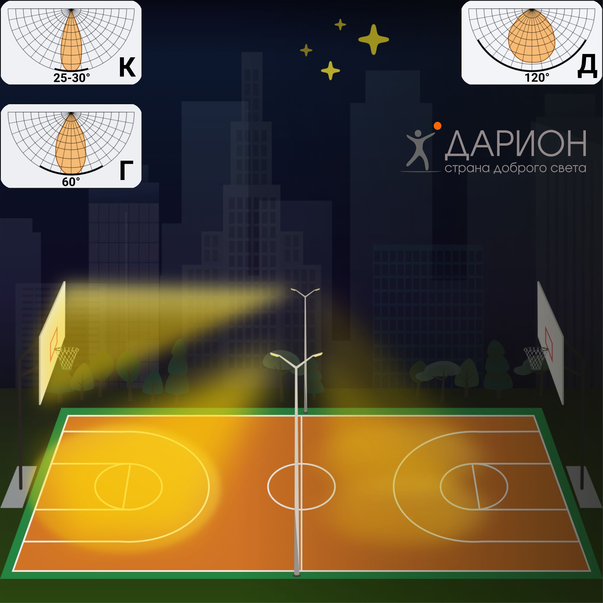 Область примененияспортивные объекты (спортзалы); архитектурная, рекламная подсветка;